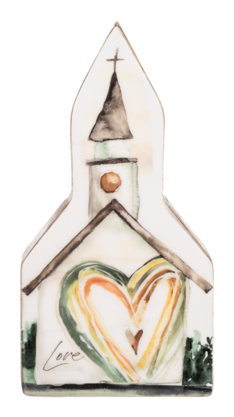 This item is a wooden block with a church image featuring the work “Love”. The image has a resin finish to protect and last a lifetime. Watercolor church art block would make for a great gift of encouragement or inspiration for many occasions. You could add this item to your own home, office, and gathering place to add a touch of “Love” in that space. Dimensions: 4″ W. x 1 1/2″ D. x 7 3/4″ H.